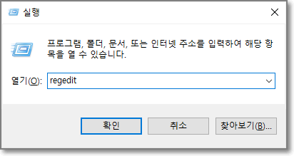윈도우 키 + R 버튼을 동시에 누른 후 regedit을 입력하고 확인을 한다. 그런 후 아래 경로의 2개 항목들을 삭제한다.