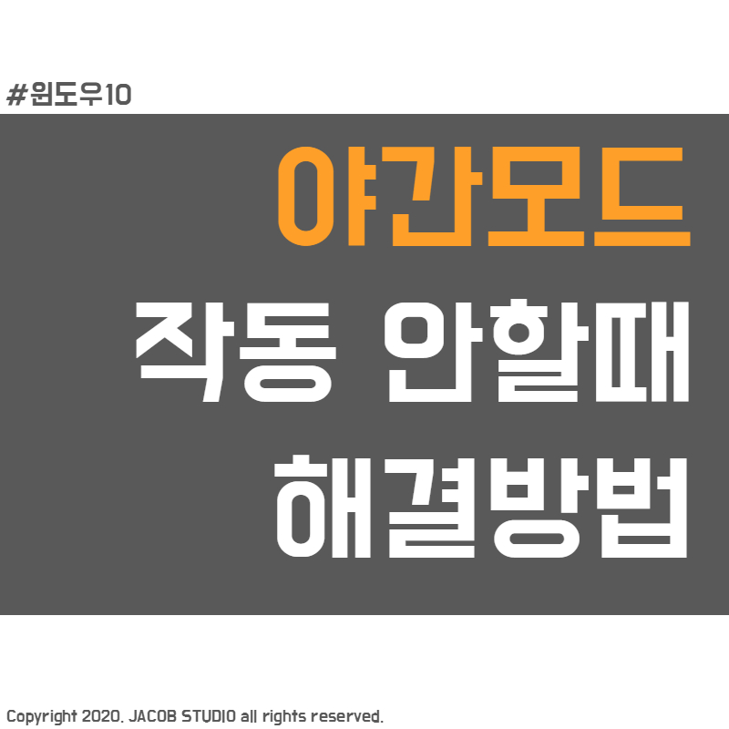 이 글은 내가 직접 문제에 처했을때 실행해 본 결과 작동하지 않는 문제가 해결된 방법을 소개하고자 한다. 그러니 나처럼 안구건조증 혹은 눈이 유독 약해서 윈도우10 야간모드 기능이 없으면 안 되는 분들을 위해 공유한다.